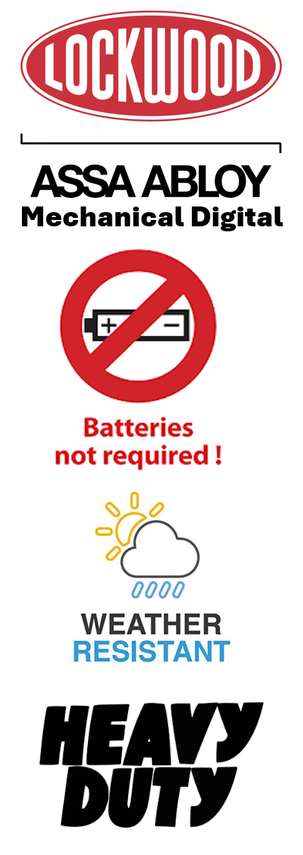 - Fully mechanical keypad lock - no batteries or wiring required